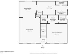 Inside, the main level features a large living room with multiple windows bringing in natural light. A ceiling fan centers the space, and the layout flows easily toward the kitchen and dining area. The kitchen includes an electric range, double-basin sink, upper and lower cabinetry, and a layout suited for everyday prep and storage needs. Nearby, the dining area sits in its own designated space, making mealtime transitions simple and convenient. A half bathroom on this level adds essential functionality to the shared living spaces.