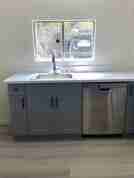 Completely remodeled kitchen and two bathrooms with quartz and tile. Stainless steel appliances.