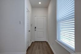 Step inside and experience soaring 9-ft. ceilings that create a bright, open, and inviting atmosphere. The kitchen is a true highlight, featuring Shaker-style 42-in. upper cabinets, a stylish tile backsplash, and gleaming Miami White Silestone countertops-perfectly blending elegance with everyday functionality. Unwind in the primary bath, where a spacious shower with Emser tile surround offers a spa-like retreat. Durable vinyl plank flooring runs throughout the main living areas, combining modern style with low-maintenance living. Enjoy added convenience with an automatic sprinkler system for effortless lawn care. Ideally located near Texas A&M San Antonio and offering easy access to downtown, this home is the perfect mix of comfort, style, and convenience.