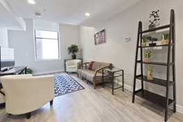 This chic loft features mid-century modern decor, sleek hardwood floors, and an open-concept renovated kitchen. Located in Downtown Crossing, right by all the action in Boston's shopping district.