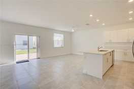 open floor plan with a bright, airy living area, a fully equipped kitchen with stainless steel appliances, and a