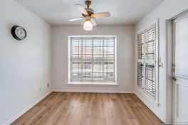 Terrific upper condo in Alamo Heights Schools. Perfect setting, end unit, very nice community. Stainless steel appliances in a spacious eat-in kitchen, along with a stackable washer/dryer, provide perfect convenience. Wet bar or coffee bar, plantation shutters, and close proximity to stores and major freeways. Silestone countertops in the kitchen and coffee bar are a new addition. Water is included. Two covered parking spots are located just down the stairs from the back door.