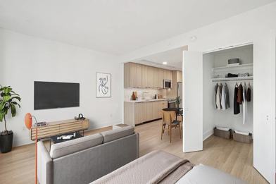 GOWANUS NEW CONSTRUCTION | FULL AMENITIES | FURNISHED STUDIO APARTMENT DESCRIPTION: $1,000 Reduced Security Deposit for Qualified Applicants $1,000 Visa Gift Card to put towards moving expenses. To receive this reward, an application for an apartment must be completed on the same day as a tour. Furnished studio apartment offering an oversized walk-in closet for ample storage. Move in ready. This home features a private washer and dryer offering every day ease. Application Fee: $20 per leaseholder and guarantor. Security Deposit: Equal to 1-months rent unless stated otherwise in the lease. Credit & Debit Cards Fees (for BILT): Credit Cards 3% and debit $9.95 per transaction. Credit & Debit Cards Fees (for ClickPay): Credit Cards 2.95% ($15 for VISA) and debit $9.95 per transaction (foreign transaction fee: additional 1.00% fee applies when using an international credit card). Utilities: Cable, internet, telephone, and electricity costs: Based on usage. Additional Security Deposit & Rent Increase: As required per the lease and allowed under applicable law. Renters Insurance: Required policy (you may obtain through your preferred provider). The Guarantors or Rhino: Optional, if you use these services, their applicable fees will apply. Late Fees: 5% or $50 per instance, whichever is less. Non-Sufficient Funds Fee: $50 per instance. Key Replacement Fee:$20Key Fob Replacement: $20Key Cylinder/Lock Replacement: $150 Damage Fees: Billed at cost for damages beyond normal wear and tear. Legal Fees: Billed at cost, as permitted by law. Cable/Internet/Phone: Optional - supplied by independent providers. For electricity there are 3 possibilities depending on the property: 1) No fee, 2) Electricity charge from independent provider, based on usage, 3) Electricity charge from landlord, based on usage. Lounge/Party Room Event Fees: As billed by the hour, optional - if available Bicycle Storage Fee: Optional $25 per month, per bike. *GROSS RENT - $3894 *TWO MONTHS FREE ON A 16 MONTH LEASE TERM BUILDING DESCRIPTION: President sits at the intersection of Union & Nevins in Gowanus, Brooklyn with 350 apartments ranging from studio to two-bedrooms. This new development offers fresh finishes and a variety of layouts. The 25,000 square foot amenity offering includes daily conveniences like a fitness center and co-working lounge to true luxuries like a rooftop pool and golf simulator. There is an optional amenity fee of $85 per person, per month, and an optional pool amenity of $500 fee per household, per year/season. hide full description Policies Guarantors accepted Pets allowed Pied-a-terre allowed Smoke-free Sublets allowed Home features Dishwasher Furnished Private outdoor space Garden Washer/dryer Building amenities Services and facilities Bike room Concierge Doorman Full-time Elevator Laundry in building Live-in super Package room Parking Garage Valet service Wheelchair access Wellness and recreation Gym Media room Swimming pool Shared outdoor space Courtyard Deck Garden Patio Roof deck