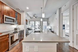 This apartment boasts large windows that flood the space with natural light, contemporary decor, and an open kitchen. Enjoy features like a large island, breakfast bar, and spacious walk-in closets. The apartment also includes in-unit laundry for your convenience.