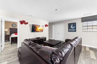 This spacious home boasts 9 bedrooms and 5 full bathrooms, providing ample space for relaxation and entertainment. The living room is perfect for family gatherings, while the large kitchen is fully equipped with stainless steel appliances for all your culinary needs. Enjoy the game room with foosball, a pool table, and gaming consoles, or unwind in the private pool and hot tub with the option to add heat. The outdoor patio features a grill and loungers, and you have free access to the community water park and clubhouse amenities.