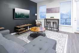 Everything you need is within easy reach. Interior features include built-in USB ports, stainless steel appliances, a washer and dryer, keyless entry, spacious closets, and quartz counters. The fully equipped kitchen has full-sized appliances including a dishwasher, electric range/stove, refrigerator, microwave, coffee maker with complimentary coffee, toaster, blender, food processor, pots and pans, and basic spices for cooking. The building has a lounge, bark park, and a wellness studio/gym.