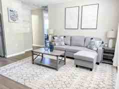 A starter pack of amenities is provided inside the home, including a fresh paper towel roll, a new roll of toilet paper per bathroom with extras left under the sink, hand soap in each bathroom and kitchen, a new sponge, dish soap and 3 dishwasher tabs, a set of travel-sized shampoo, conditioner and body wash per bathroom, a few trash bags with one in the can upon arrival, and 3 laundry pods for the washer and dryer.