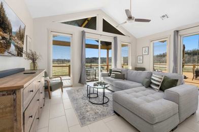 This home features a fully stocked kitchen and a cozy living room with large windows, comfortable seating, board games, and a Smart TV. The kitchen is fully stocked for preparing meals or enjoying a great cup of coffee. Enjoy the outdoor shower after a day on the river. There is also a washer and dryer for guest use.