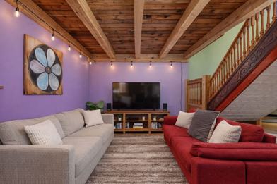 The apartment is adorned with high-end historic relics and artifacts, offering a kids' wing with extra couches, a 65" smart TV, games, and a loft. Enjoy a fully stocked library with cozy chairs, a spacious kitchen with an industrial stove and oven, and a formal dining room. The numerous inviting living spaces with unique decor make it an entertainer's dream, allowing for both socializing and intimate conversations.