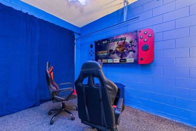 This beautifully themed villa features a large, bright living area with plush sofas and smart TVs. The remodeled game room, equipped with a pool table and game console, offers hours of entertainment. Each bedroom provides a tranquil respite with comfortable beds and extra pillows. Super-fast Wi-Fi and a coffee bar are available for your convenience. The luxurious modern bathrooms are fully stocked with essentials, and the fully equipped kitchen includes everything from a stove to wine glasses. Enjoy home-cooked meals at the dining table or in the dedicated outdoor dining area.