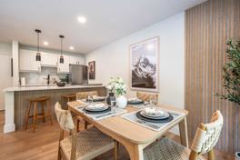 The unit's central location makes it easy to experience Aspen on foot, with everything from the gondola and hiking trails to dining, shopping, and nightlife just minutes away. Directly across the street, you’ll find the Rio Grande Trail, John Denver Sanctuary, and Newbury Park. The living room features a spacious and comfortable sofa with an ottoman and a 55" Samsung Frame TV with cable and streaming services. A wall of windows fills the space with natural light, making the room feel light, bright, and inviting. The newly updated kitchen includes white cabinets, quartz countertops, and all new appliances and is fully equipped with everything you need to prepare a home-cooked meal. The space includes seating for three at the counter and a dining table that seats four comfortably. Soft white towels, plush robes, hairdryers, and premium toiletries, including shampoo, conditioner, body wash, and lotion, are provided for your comfort.