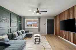 The house includes three bedrooms with two king-size beds and one queen-size bed, along with two baths. Enjoy a fully equipped kitchen and dining set, a gated and fully fenced backyard, central AC and heating, and four smart TVs. A desk with a chair, shredder, and printer is available for your convenience, along with fast Wi-Fi and an in-unit washer and dryer.