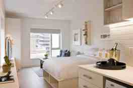 Feel at home in this deluxe studio apartment furnished with eye-catching decor.