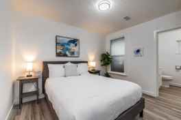 Enjoy all the comforts of home with a fully equipped kitchen featuring a stove, oven, and microwave, allowing you to chef it up at home. Relax in the living area with a smart TV and luxury vinyl floors, and rest easy on a queen-size bed with a mattress protector, sheets, duvet, and pillows. Towels, soap, shampoo, conditioner, and a hairdryer are also provided.