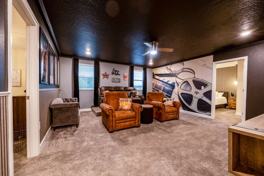 Looking for the perfect Orlando retreat to celebrate exciting milestones or relaxing vacations with family and friends? We would love to invite you to enjoy our beautiful home in The Hideaway Club at Storey Lake Resort. The home is beautifully furnished with impressive theme room decor and a large theatre room for hours of fun! Relax with a refreshing dip in the pool and spa and enjoy everything this unique home, upscale community amenities and Central Florida has to offer. Downstairs you will find a game room, living room, kitchen, dining room, laundry room, and pool area. Upstairs you will find a theatre room and a detached bathroom in the hallway.