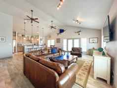 This luxurious waterfront oasis is perfectly situated near the pristine shores of Whitecap Beach and picturesque Corpus Christi Bay. The canal-front home offers direct water access for boating and water activities. Relax in the spacious living room with panoramic waterfront views and large windows that invite in natural light. The fully equipped kitchen, complete with modern appliances and cookware, is perfect for preparing family feasts. Enjoy your morning coffee from the breakfast bar overlooking the tranquil canal, and gather in the ample dining space for family meals.