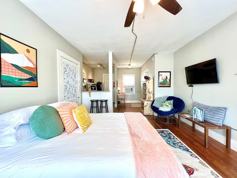 Guests will have access to the entire home during their stay and will be issued one key. Keyless access and self-check-in are available. A Ring doorbell is installed on the back entry for security purposes. The apartment is pet-friendly with a required pet fee of $120 per pet per stay, non-refundable. A maximum of two pets, including emotional support animals, is allowed. Unauthorized pets are subject to a $200 fine and immediate eviction. No smoking is allowed, with a $200 fine for violations and immediate eviction. No parties or events are allowed, with a maximum of four guests. Violations will result in immediate eviction. Check-in is any time after 4 pm and check-out is by 11 am. A $75 initial late fee applies for guests that do not check out by 11 am, with $40 per hour thereafter. Trash must be placed in the provided trash receptacle located at the back of the property. Guests may not have personal mail, items, or packages delivered to the home without express written consent of the host. Any items left behind will incur a minimum trip fee charge of $25 plus the cost of shipping.