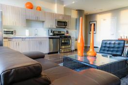 Guests have full access to the unit and free access to many building amenities, including a gym, conference room, theater, community room, bark park, gourmet food court, and a rooftop terrace with outdoor lounge chairs, ping-pong table, and grill during the warmer months of the year.