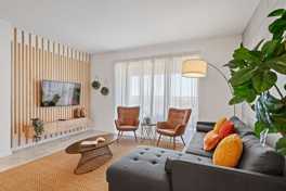 Experience the charm of this spacious and sophisticated 3-bedroom, 2-bathroom condo. The generous living room seamlessly integrates with a fully equipped kitchen and dining area, accommodating up to 9 guests. Retreat to the stylish King bedroom suite, or enjoy the Star Wars-themed room with two double beds, sharing a bathroom with the beautifully decorated third bedroom featuring a single and a double bed. Take advantage of scenic views from the balcony. This condo includes a laundry room, complimentary Wi-Fi, covered garage, and a considerate welcome kit with basic amenities for your convenience upon arrival. Guests are responsible for replenishing bathroom and kitchen amenities based on their usage.