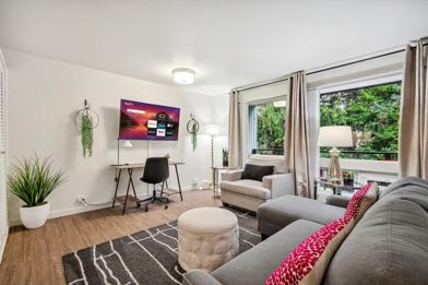 Perfect for traveling professionals and corporate relocations, this stylish downtown Bellevue apartment is your home away from home, fully furnished and equipped for extended stays. Located just 0.8 miles from downtown Bellevue and 9.9 miles from Seattle, you'll have everything needed for a productive and comfortable stay. The apartment features a king bed with luxury linens for restful sleep, a stylish chaise lounge sofa, a keyless entry system for seamless check-in, an in-unit washer/dryer, and a private furnished patio for relaxation. The fully equipped kitchen includes full-size stainless steel appliances, a Keurig coffee maker, modern conveniences like a rice cooker and air fryer, and complete cookware and utensils, perfect for meal prep during extended business stays.