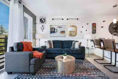 Centrally located and ADA compliant, this professionally designed 1-bedroom apartment offers a fully stocked home with fast Wi-Fi, TV streaming services, and an in-unit washer and dryer, all crafted with your comfort in mind. Step out onto the building's rooftop to experience stellar Eastside views of Bellevue across Lake Washington, with the Cascades gleaming in the background. The home is newly updated with comfortable furnishings, a rooftop dining area with a BBQ grill, and views of the Olympic, Cascade, and Rainer mountains.