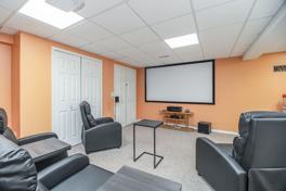 The property includes premium amenities such as a variety of cooking spices and oils for a delightful meal experience. Enjoy the movie theater setup in the basement for a cinematic experience at home. Please note that fees may vary for long-term stays.