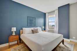 This thoughtfully designed space features a fully equipped kitchen stocked with essentials: a Keurig with pods and sugar, bottled water, toaster, cookware, dishware, wine glasses, and bar seating. The open living area boasts high ceilings, oversized windows with city views and privacy shades, a plush sofa, cozy throws and pillows, and a 55" smart TV that is ready to go for streaming. The refreshed bathroom has plush towels, shampoo, conditioner, body wash, a hair dryer, and other extras. The bedroom is a quiet retreat, complete with blackout shades and a spacious walk-in closet outfitted with a drying rack, iron, ironing board, and laundry supplies.