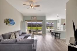 Relax in a bright and spacious living area featuring a plush sectional sofa, a 36” flat-screen TV, and a game station, perfect for unwinding after a day at the parks. The fully equipped kitchen boasts modern appliances, cookware, and utensils, making meal preparation a breeze. Enjoy casual meals at the breakfast nook with seating for 4 or gather at the dining table with space for 6. The home also includes a games room with a pool table, foosball, and air hockey tables, along with a selection of toys and games for all ages. Step onto the screened deck featuring a private pool with spa, outdoor dining furniture, and sun loungers, the perfect spot for enjoying Florida’s sunny weather.