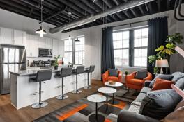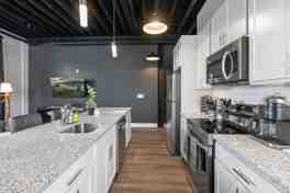 This contemporary apartment with an urban design is fully furnished. Amenities for your convenience include keyless entry, a fully equipped kitchen with a Keurig, refrigerator, freezer, stove, oven, and microwave, central A/C and heating, basic toiletries, towels, linens, bed pillows, blankets, hangers, a hair dryer, a full closet with hangers, and an in-unit washer and dryer.