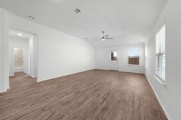 The Cedar floorplan, 1,629 sq ft, offers 3 bedrooms, with 2 bathrooms, an open concept family, dining, kitchen area, primary suite offers an en suite bath with separate vanities and two walk in closets! Each home offers luxury vinyl plank, easy care floors, granite style-quartz counter tops, European style cabinetry, new appliances and a full size utility room. The home has an adorable covered porch, two car garage and privately fenced yard. Enjoy maintenance free lawncare, you only need to maintain the fenced area. Photos are representative of this floorplan, not actual.