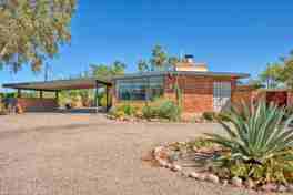 Rental Home - Mid-Century Burnt Adobe Ranch! Enjoy Tucson living in this beautifully maintained 1958 home by Lusk Corporation in Casas Adobes, inspired by Indian Ridge Historic District. 2,039 sq ft, 4 beds/2 baths, vaulted ceilings, concrete floors, remodeled bathrooms, and abundant natural light. Owners preserved original charm with modern updates. Spacious bedrooms with large windows, landscaped yard, courtyard, and paid-off solar (tenant pays utilities). Pets may be allowed. 1-year lease. For rent only—not for sale!