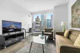 Experience the finest of NYC luxury with this Hudson Yards apartment. From the grand double-height lobby to breathtaking views at the rooftop club or swimming pool, you will have the chance to experience an exclusive lifestyle while feeling at home. This elegant apartment features designer kitchens and hardwood floors, is fully furnished with top-of-the-line furniture and appliances, and includes an in-unit washer/dryer and free Wi-Fi. Enjoy the convenience of a 24-hour doorman, fitness center, and bowling alley.