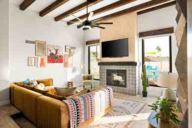 Welcome to this resort-style home in Arizona, nestled in a serene setting. The property boasts 5 bedrooms and 2 full bathrooms, accommodating up to 16 guests in comfort and style. Enjoy modern amenities including a private pool, hot tub, pickleball and basketball court, and recreational games like putt-putt and volleyball in the pool. Whether you're seeking adventure in nearby attractions or unwinding by the poolside, this home offers the perfect blend of relaxation and entertainment. The chef’s kitchen is fully stocked with high-end appliances, a large fridge, and ample cabinetry, while the living room features a 65" smart TV, large plush sofa, and expansive window with a backyard view.