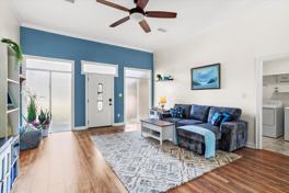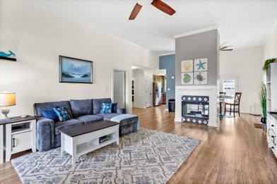 'Pelican Bay' is a 1,629 sq ft slice of paradise that balances convenience with the warmth of a beach home. The tastefully decorated open-concept living space is accentuated by vaulted ceilings, and a wood-burning fireplace that sets the perfect tone for whisking away colder fall evenings. The property boasts 3 comfortably appointed bedrooms, making it an idyllic setting for up to 8 guests. Unwind in the master bedroom equipped with a California King where dreams come easy. Subsequent rooms offer a plush Queen bed, and two Twin beds respectively ensuring restful nights for all. A well-equipped kitchen remains at your disposal to conjure meals and memories alike. Featuring an updated dishwasher, drip coffee maker, and a stylish bar; whipping up a breakfast mimosa or serving piping hot dinners is mere child's play. Our unique addition: an air-fryer to deliver those guilt-free crispy treats! Stepping outside, you find an expansive backyard that sings the song of Southern tranquility. Dive into a revitalizing saltwater pool or find serenity under the sun umbrella, your very own vacation staple. As evening rolls in, gather around the fire pit for s'mores; while grill masters can display their culinary prowess on the provided gas grill. Our indoor living area prides itself on modern comforts, including Smart TVs, and a PlayStation, ideal for family movie or game nights. A laptop-friendly workspace is also on hand for those who need to stay connected. The property facilitates step-free access and provides essentials, including a washer, dryer, linens, and toiletries.
