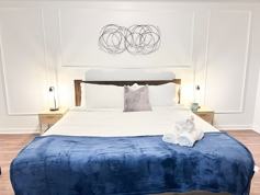 Feel the comforts of home while on vacation in this clean and beautiful space. The living area features a comfortable couch, a 55-inch TV, and a desk with a chair for a working space. The kitchen and dining area include a cozy dining table with six chairs, a full-sized refrigerator, microwave, oven, and coffee maker. While it may not be a fully equipped kitchen of the quality like your home, it is equipped with all major appliances and some basic kitchenware to make simple meals. The master bedroom offers a king-size bed, a full bathroom with a shower, and a walk-in closet. Additional amenities include free Wi-Fi, an onsite washer and dryer, and an extra queen air mattress available on site.