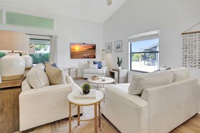 Experience the charm of an old Florida neighborhood while enjoying the modern comforts of this beautifully renovated home in Bonita Shores, northern Collier County. With tall ceilings and abundant natural light, this luxurious property features brand new furnishings, appliances, and finishes, offering a welcoming atmosphere from the moment you step inside.