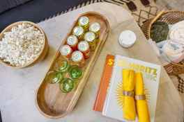 This apartment features a spacious primary bedroom with blackout curtains and an en-suite with a walk-in shower and soaking tub, a saltwater pool and spa in the backyard retreat with a putting green, an outdoor firepit and lounge area, an outdoor dining area with a grill, an executive office, a gym with Tonal and NordicTrack equipment, a chef's kitchen that is fully loaded and stocked, a movie lounge, a home bar, a deluxe coffee bar offering 4 brew methods: drip, K-cup, Nespresso espresso maker, and french press, along with whole bean coffee and a coffee grinder, spa-like bathrooms with walk-in showers, soaking tubs, and luxury finishes, a statement upstairs bar with hand-carved teak Noir Buddha stools, and a thoughtfully stocked library and games.