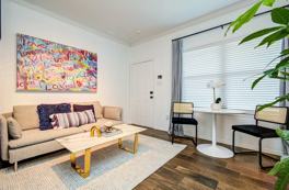 Indulge in a boutique studio experience in vibrant Midtown, meticulously designed for the discerning traveler. This opulent retreat combines sophisticated design with high-tech amenities, including a dedicated workstation with a computer monitor, a Google Nest Hub smart display, and two complimentary e-scooters to explore the city. Situated moments from Houston's best dining, nightlife, and cultural attractions, this is your key to a luxurious and seamlessly connected urban adventure.