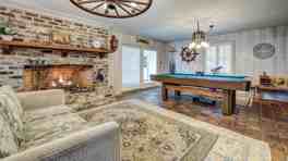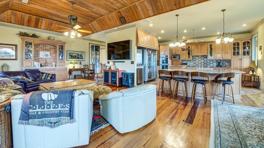 Mull Cottage is designed with comfort and convenience in mind, featuring a gourmet kitchen and dining area in the great room, as well as a second kitchen downstairs. The property includes a king master bedroom, three king guest rooms, a queen guest room with bunk beds, and a queen guest room with a queen sleeper sofa, plus additional daybed and trundle. The downstairs living room also offers an additional queen sleeper sofa, daybed, and trundle, ensuring plenty of sleeping arrangements for all guests.
