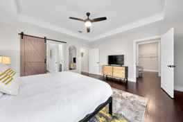 This home features 4 bedrooms and 3 ½ bathrooms. The master bedroom on the main floor includes a king-size bed and an en-suite bathroom with a standalone shower and soaking bathtub. The second and third bedrooms each have two queen beds and share a Jack and Jill bathroom. Upstairs, the second master bedroom also boasts a king-size bed and an en-suite bathroom with a standalone shower and soaking bathtub. Enjoy the fully equipped chef's kitchen, a washer and dryer, dining seating for 8, a fully fenced backyard, a home office, a private deck off the master bedroom, a 2-car garage, an in-wall fireplace, smart TVs in all bedrooms, high-speed Wi-Fi throughout, and a game room with a PlayStation. This home is pet-friendly.