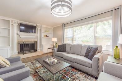 Welcome to this beautifully renovated and private Marietta home, offering three finished floors of comfort and style. Inside, you'll find five spacious bedrooms and four full bathrooms, along with a newly remodeled kitchen, a dining area with seating for eight, and a living area that accommodates ten. The home also features a kids' play area and workout equipment, ensuring a memorable stay. Enjoy the large patio equipped with a grill and entertaining space, and benefit from the privacy of a two-car garage.