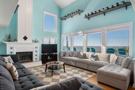 Step inside and be greeted by stunning sound views, complemented by an open-concept layout designed for seamless entertaining of large groups up to 15 guests. The great room features a cozy electric fireplace, plenty of comfortable seating, and wall-to-wall water views, creating an inviting space for gathering and relaxation. The fully stocked kitchen includes a blender, drip coffee machine with grinder, Keurig machine, cake mixer, pots, pans, oven, serving trays, crockpot, rice maker, dishwasher, toaster, toaster oven, oven, stove, and refrigerator with filtered drinking water and ice maker. Dining and entertaining spaces include a dining table with seating for up to 10 guests, a spacious kitchen island perfect for cooking and socializing, a built-in breakfast nook with seating for 6, and an enclosed patio area ideal for enjoying morning coffee or evening cocktails while overlooking breathtaking sound sunsets.