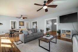 This beautiful and clean home comfortably sleeps seven guests with two queen beds, one single bed, and one sofa bed. It offers modern amenities such as air conditioning, a washer and dryer, a TV, and Wi-Fi. Guests can enjoy a seamless self check-in experience with a keypad entry.