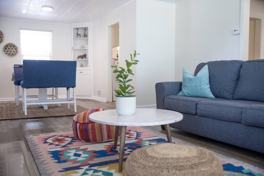 Enjoy a fully furnished kitchen to whip up your favorite meals, complete with stunning wood floors and all the tools you need for culinary success. The living room features a comfy couch, a flat-screen TV with streaming services, and a luxurious atmosphere that will impress you from the moment you step in. The home features a retro bathroom with a convenient shower/bathtub combo, catering to all your needs.
