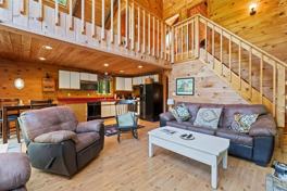 The downstairs has a bedroom with a queen bed and a full bath. The upstairs has 2 bedrooms, one with 2 twin beds and the other with bunk beds with a trundle. The trundle twin mattress could be used in the loft area for sleeping as well. This home features a washer/dryer, dishwasher, fans, heat, charcoal grill, fire pit, and outdoor furniture. For your entertainment, there is a VHS player and internet access. Coffee can be made with a drip coffee maker.
