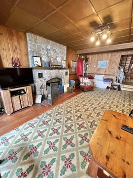 Step back in time at this charming turn-of-the-century lakeside cottage, offering a spacious retreat with six bedrooms and a bunkhouse, accommodating up to 17 guests. Enjoy the cozy fieldstone fireplace in the living room and the expansive wraparound porch with stunning lake views. The private lot features a large lawn by the lake, an L-shaped dock, and a mooring, perfect for a family getaway.