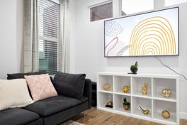 The apartment features four smart TVs and two workspaces, making it ideal for both relaxation and productivity. The fully equipped kitchen and in-unit washer and dryer add to the convenience of this modern space. Fast Wi-Fi ensures you stay connected.