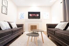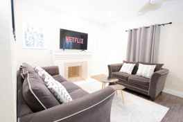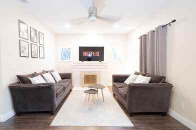 Feel at home in this inviting 3-bedroom, 2-bathroom apartment, thoughtfully furnished to cater to all your needs. Featuring a king-size bed and two queen-size beds, this home offers a spacious kitchen and high-speed Wi-Fi, ensuring comfort and convenience. Located on a quiet street, the property includes a fully fenced yard, keyless lock, and a dedicated workspace in each bedroom, making it ideal for any mid-term stay.