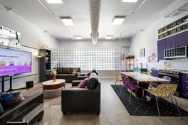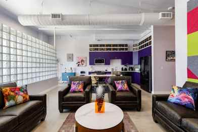 Inside, you’ll find a large, comfortable great room designed for gathering, relaxing, or working. The bedrooms are private and versatile, converting into meeting rooms when needed. This apartment features two private bedrooms that convert into meeting rooms, each with a 65-inch 4K TV, amazingly comfortable queen beds designed for restful sleep, two leather sofas with queen pull-out beds, a large open great room with an 85-inch 4K Samsung TV, a fully stocked modern kitchen, a modern bathroom with washer and dryer combo, fast, reliable Wi-Fi, and strong air conditioning.
