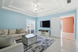 This home features a light-filled interior and a modern kitchen, perfect for entertaining. Enjoy two separate living rooms, each equipped with a 65-inch flat-screen smart TV, and a foosball table for entertainment. The large kitchen includes a dining table, island seating for 8-10 people, and a wine cooler. For your convenience, the home also provides a washer and dryer, free high-speed Wi-Fi at 200 Mbps, and access to smart TVs with hundreds of streaming apps. Outside, relax in the private pool, enjoy the serene atmosphere created by swaying palms, grill out with the gas grill, and make use of the fenced yard. A dock is also available for your boat or jet ski.